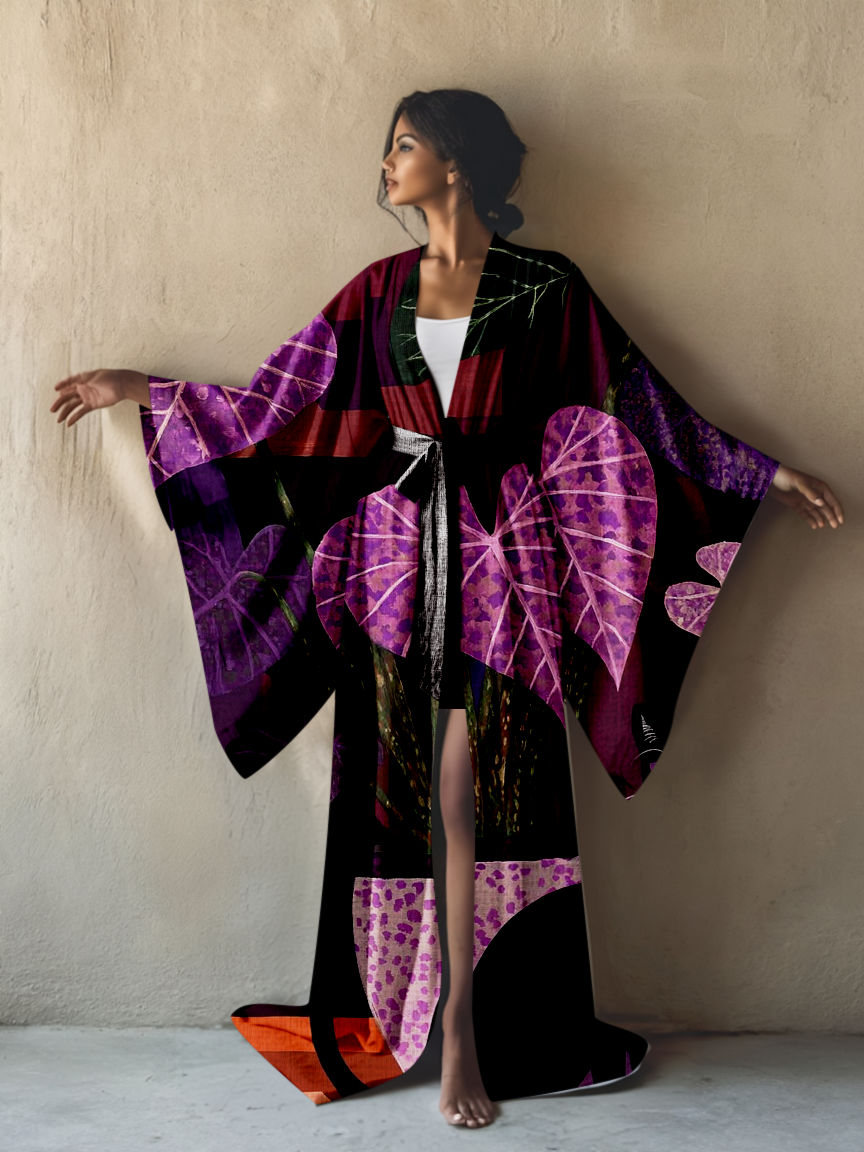 Abstract Art Print Kimono Long Gown Robe With Belt