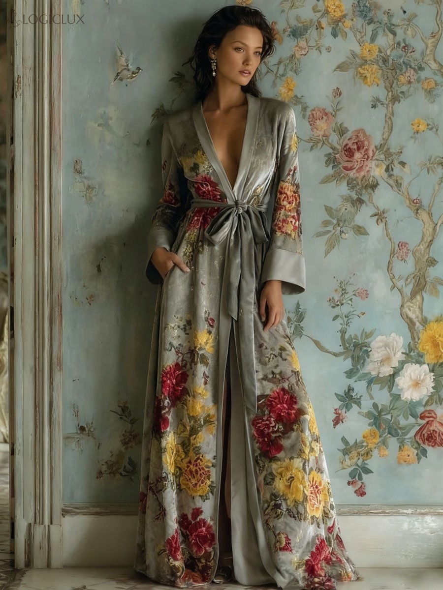 Autumn and winter elegant velvet robe (with belt)