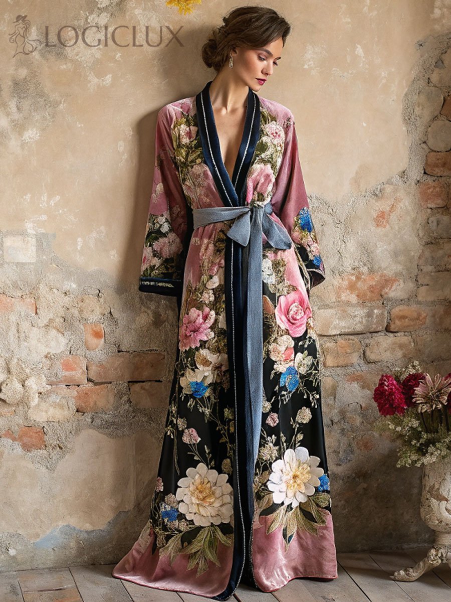 Autumn and winter elegant velvet robe (with belt)