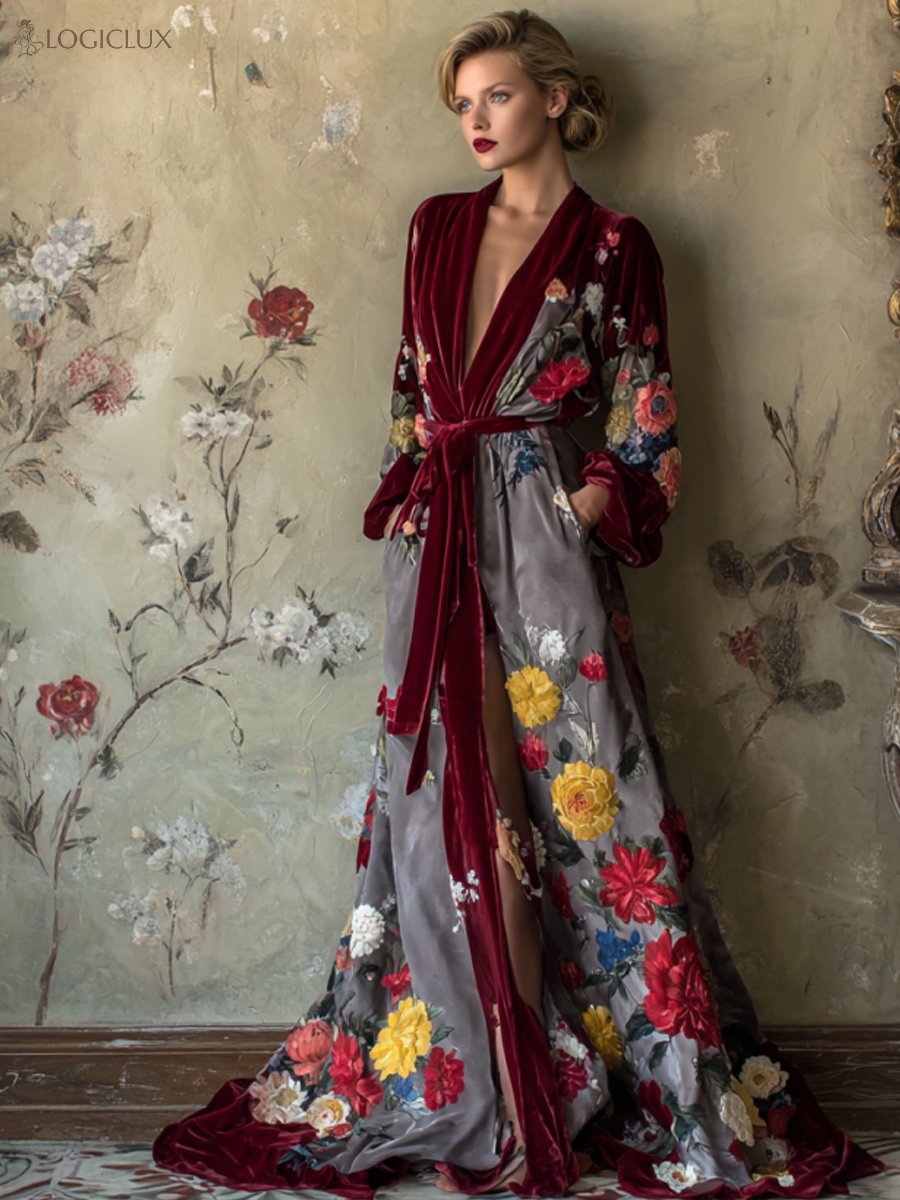 Autumn and winter elegant velvet robe (with belt)