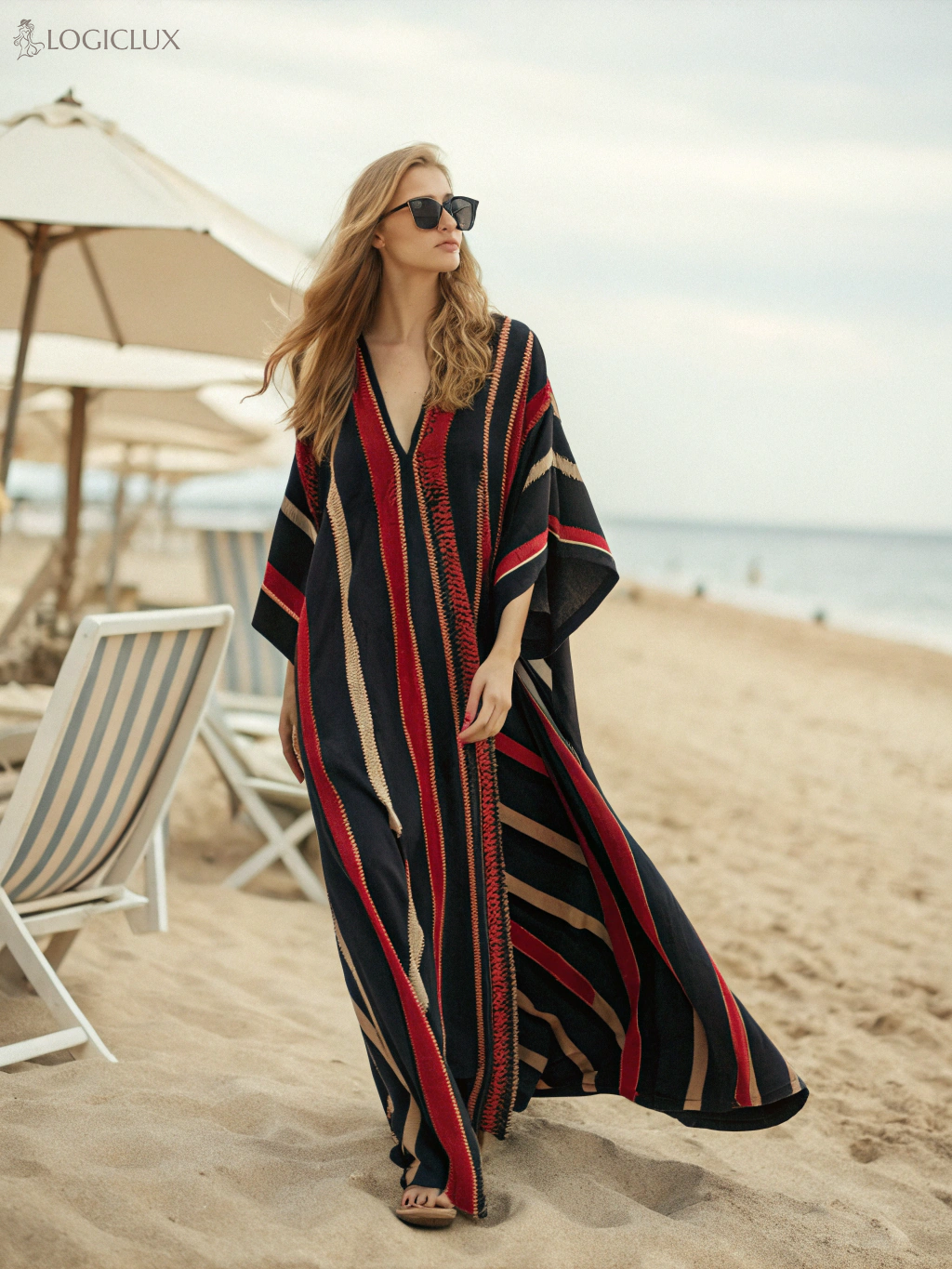 Contton & Linen Long Sleeve Kaftan Maxi Dress