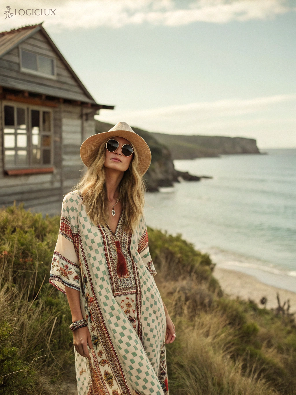 Contton & Linen Long Sleeve Kaftan Maxi Dress