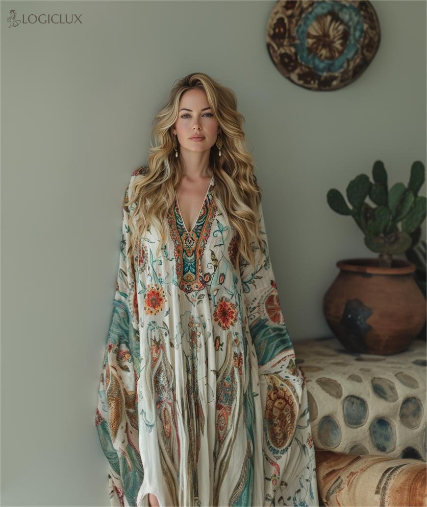 Contton & Linen Long Sleeve Kaftan Maxi Dress