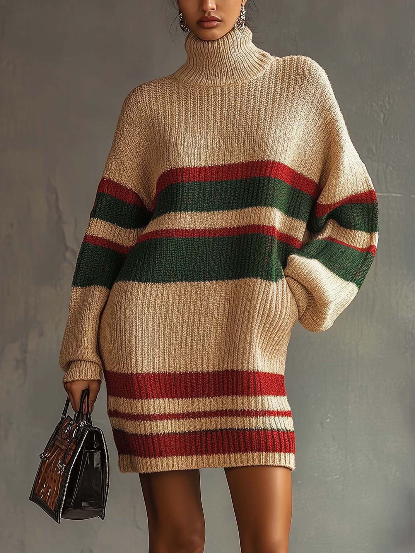 Off-white Knitted Mini Dress With Colorful Lines