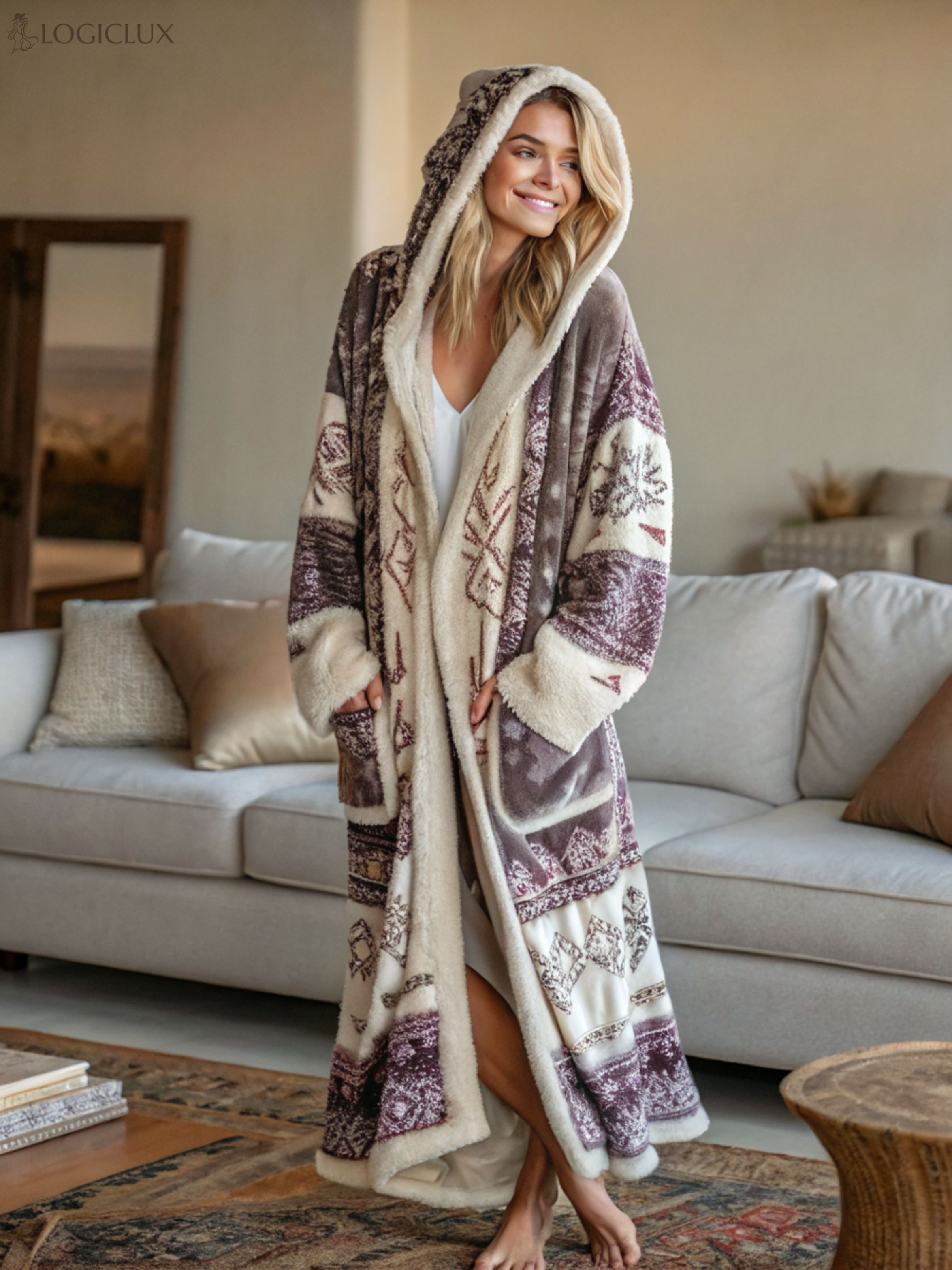 Women's Autumn and Winter Flannel V-Neck Hooded Cardigan Robe