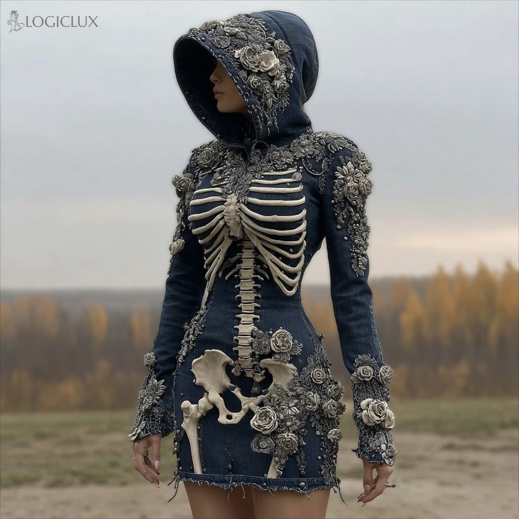 Women's Halloween Skull Rose Art Comfortable Denim Mini Skirt