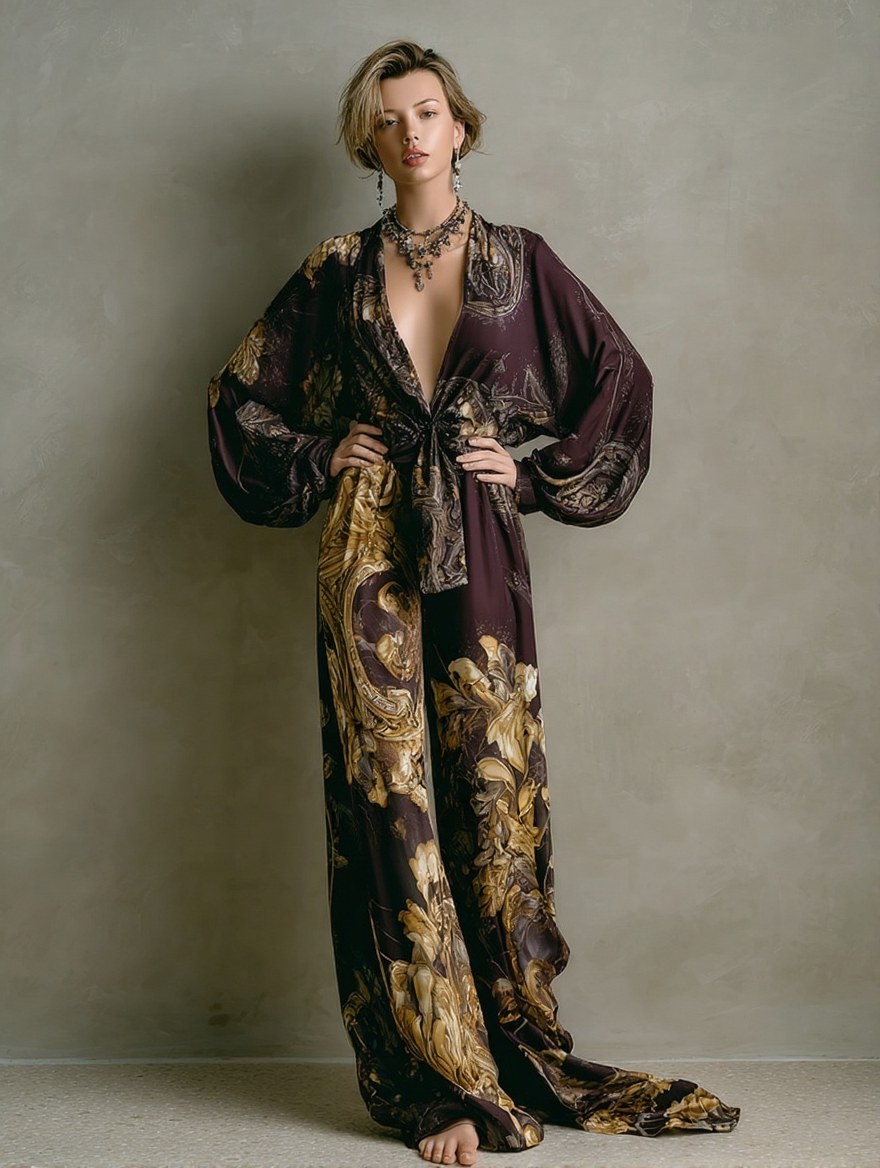 Women's Retro Elegant Chest Dark Button Gorgeous Velvet Jumpsuit