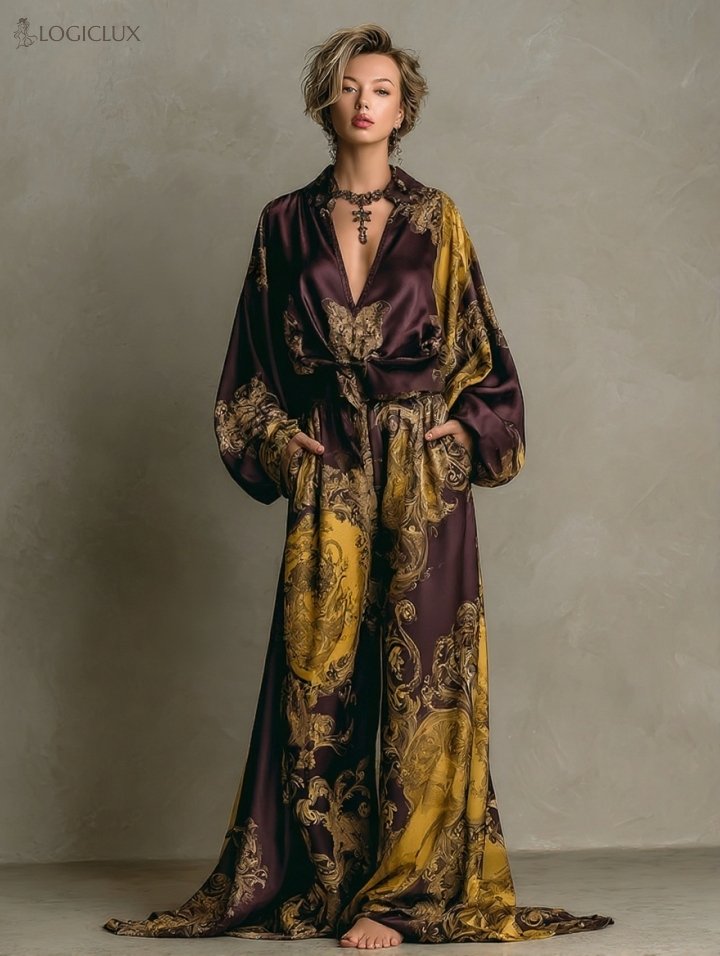 Women's Royal Floral Print Silk Set